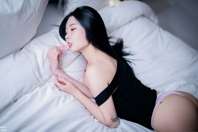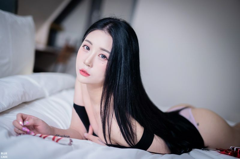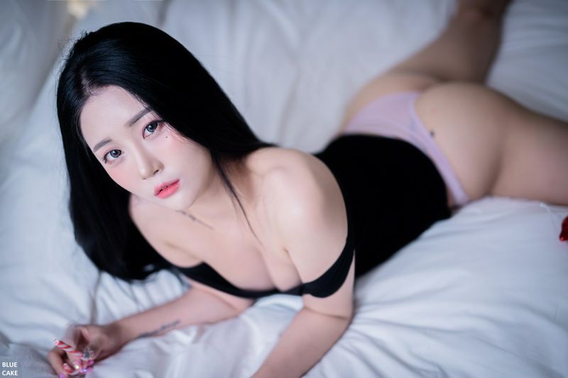 Bomi보미 黑色露肩衣双手挤胸散发魅力